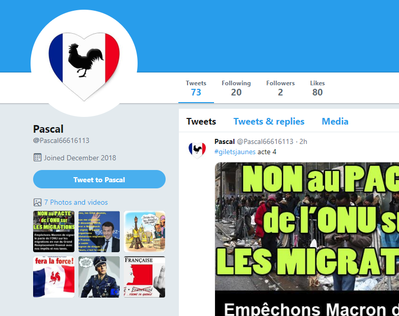 J'ai déjà parlé d'opérations psychologiques contre la France via des réseaux sociaux tels que Twitter. Cette fois, les propagandistes étrangers tirent parti des événements actuels (les protestations des gilets jaunes) pour faire avancer leur programme politique à un nouveau niveau. Voici une partie de mon enquête en cours que je voulais partager.